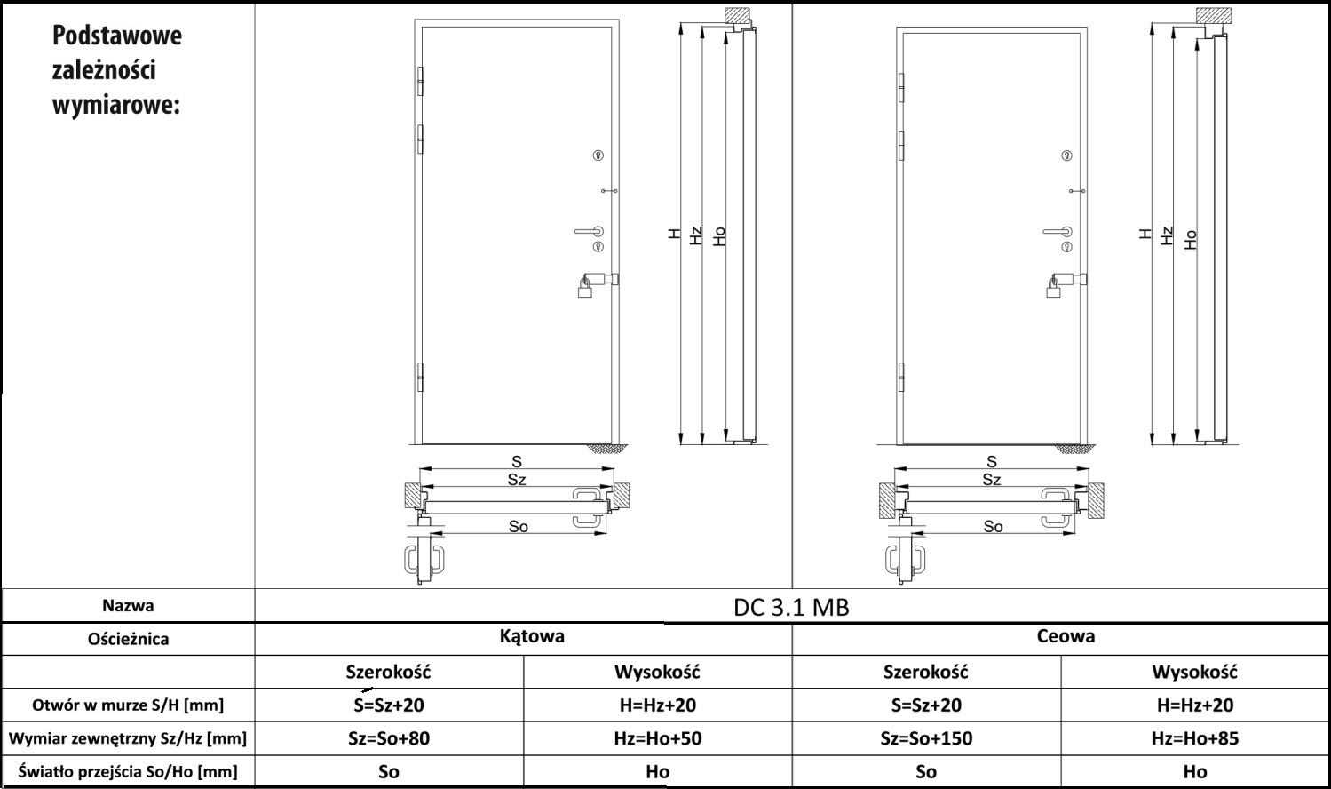 Skrzydła na wszystkich krawędziach posiadają uszczelki EPDM. Drzwi zawieszone są na trzech łożyskowanych zawiasach o średnicy 22 mm s. Ościeżnica wykonana z zimnogiętego profilu ceowego lub kątowego grubosci 3 mm. Zabezpieczenie od strony zawiasowej stanowią trzy blokady przeciwwyważeniowe. Standardowo wyposażone są w próg o wysokości 20 mm, mogą być bez progu.